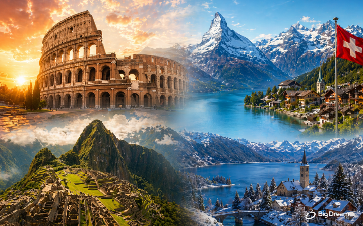 A Itália segue como um dos destinos mais desejados por quem busca cultura, gastronomia e roteiros clássicos pela Europa. Já a Suíça atrai pela organização, segurança e paisagens naturais, sendo uma escolha frequente entre viajantes que priorizam conforto e experiências mais exclusivas.